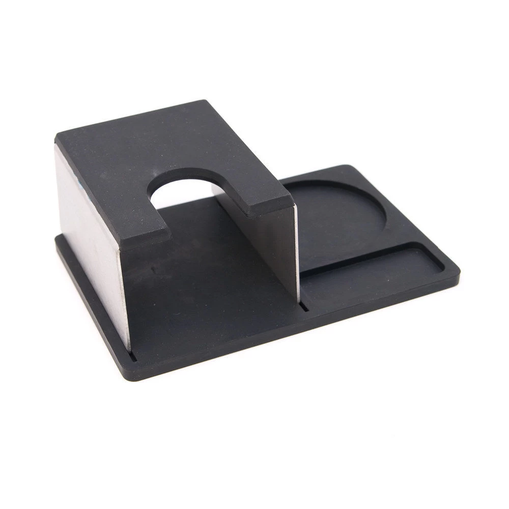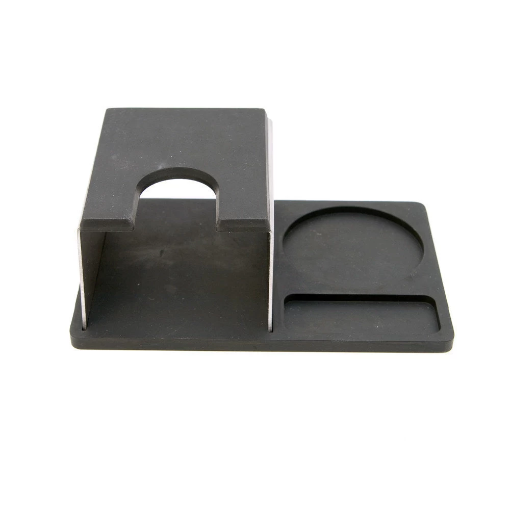 Whether you use a bottomless or spouted portafilter, our Stainless Steel Tamping Station will help you execute a level tamp all the while keeping the portafilter bottom or spouts up off the countertop, reducing the risk of contaminating your espresso extraction with stray coffee grounds. A clean, consistent, and accurate way to work. Setup can easily be altered for left or right-handed baristas.