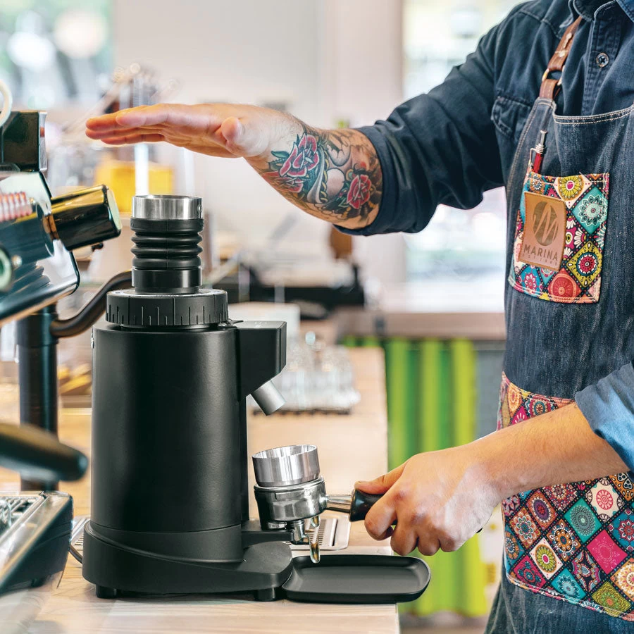 The Ceado E5SD is a smaller version of the E37SD and features Opalglide burrs, burrs that ensure a more refined treatment of coffee beans, minimizing friction while improving the outgoing flow. Coffee beans go right into the grinding chamber. When the zero retention bellows attachment is tapped with the hand, the ground coffee comes rights out of the grinding chamber, resetting it for another dose. Perfect for small cafés, bars, food trucks, offices, and home use.