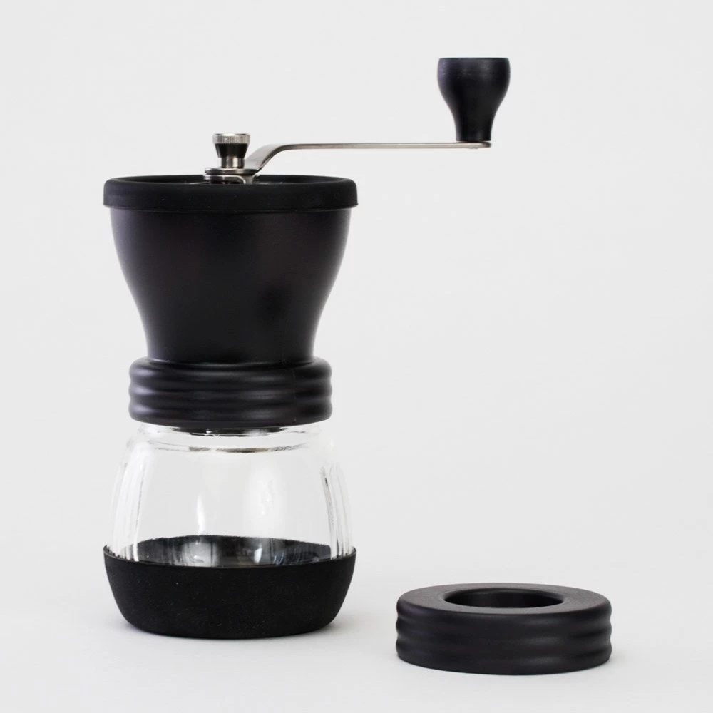 The Skerton Plus is the ideal hand grinder for the traveling coffee enthusiast or the home barista on a limited budget. It features a new and improved burr stabilizer plate, washable ceramic mill, and the attached lid keeps coffee fresh. This retro-style coffee grinder is perfect for minimalists, world travelers, and people on the go!
