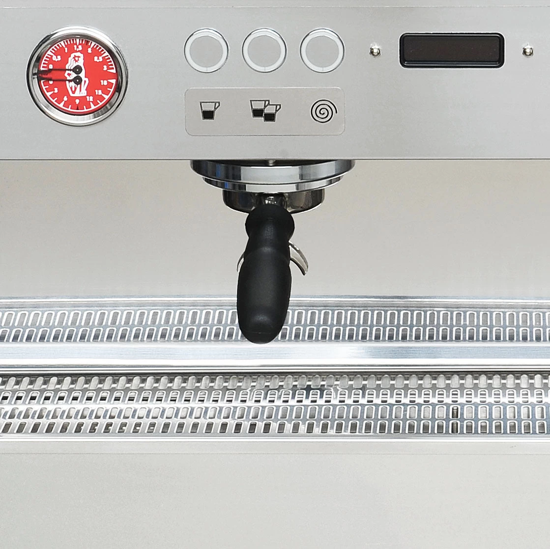 - Proprietary electronics drive intuitive programming and provide heads-up information and systems monitoring on a digital display; shot timers, flow pulse counter, USB firmware updates, boiler temperatures, and system alerts.