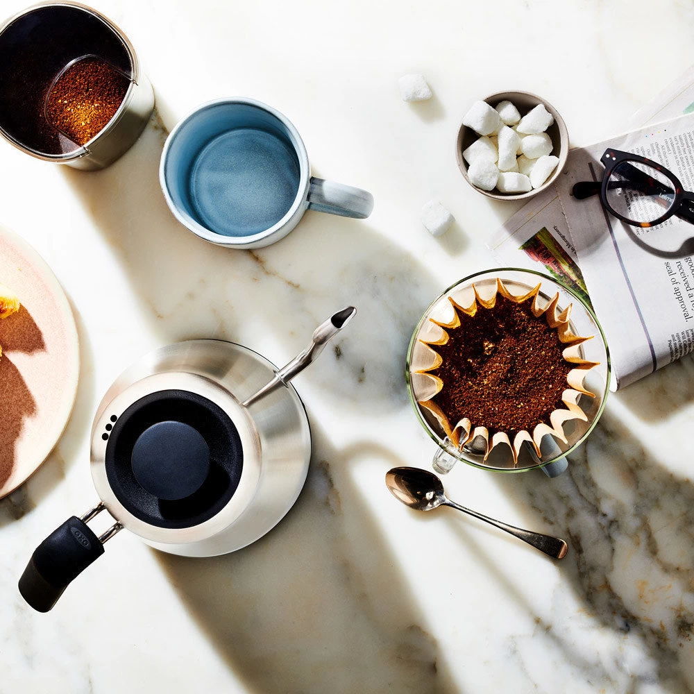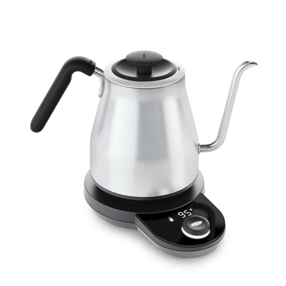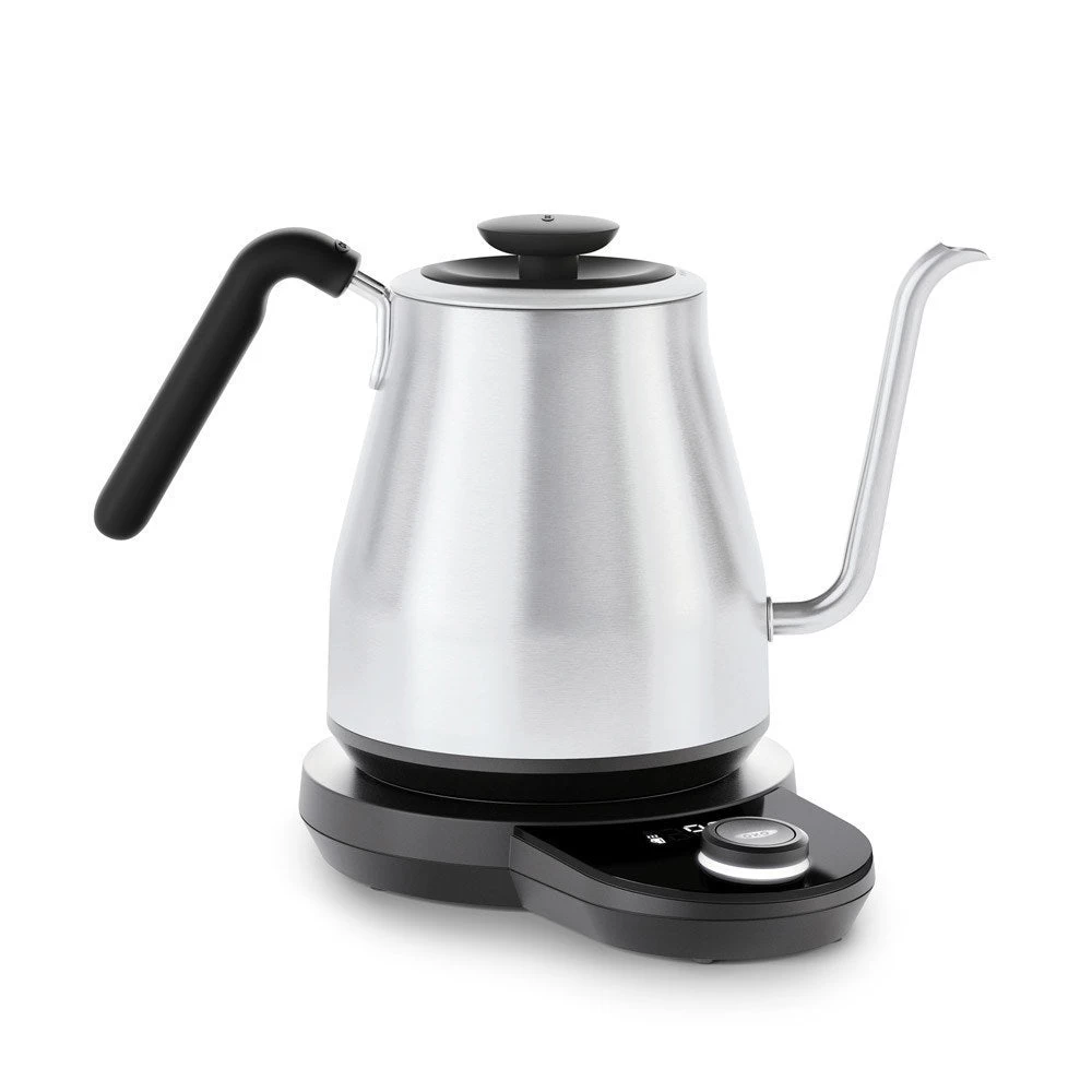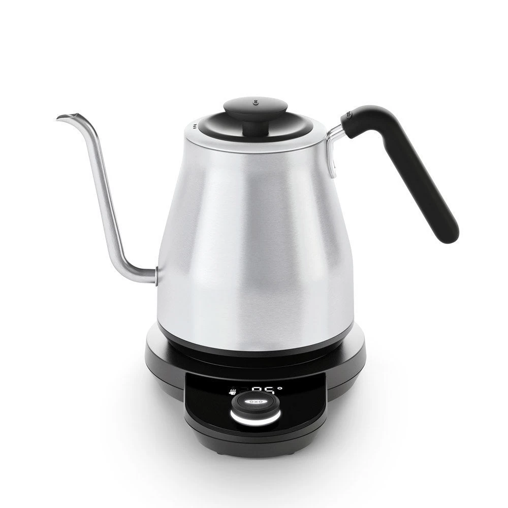The OXO Brew Adjustable Temperature Pour-Over Kettle lets you take pour-over coffee into your own hands. The handle and body are optimized for effortless balance, and the precise-pour gooseneck spout provides ultimate control. Choose your water temperature and time the process without a separate tool and enjoy your perfect cup of pour-over.
