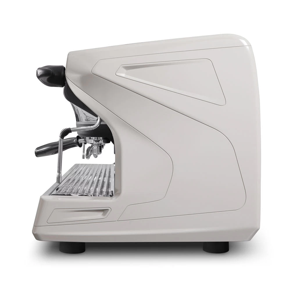 We like the Rancilio Classe 7 for several reasons. Visually it offers a more ergonomic navigation system for baristas due to its digital control panel and LED lights that light up the work area. Soft-touch keypads feel elegant and 4 programmable doses make time behind the bar a breeze. The C-Lever features 2 positions: pulse steam or steam fully for better ergonomics. The larger heating element is more thermodynamic or heat stable so your baristas are able to make more drinks per hour. The hot water dispenser has a programmable dispenser: a fantastic efficiency feature for the barista. While in standby mode the Classe 7 reduces energy consumption by 20% making this an eco-friendly espresso machine.