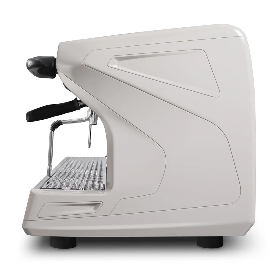 We like the Rancilio Classe 7 for several reasons. Visually it offers a more ergonomic navigation system for baristas due to its digital control panel and LED lights that light up the work area. Soft-touch keypads feel elegant and 4 programmable doses make time behind the bar a breeze. The C-Lever features 2 positions: pulse steam or steam fully for better ergonomics. The larger heating element is more thermodynamic or heat stable so your baristas are able to make more drinks per hour. The hot water dispenser has a programmable dispenser: a fantastic efficiency feature for the barista. While in standby mode the Classe 7 reduces energy consumption by 20% making this an eco-friendly espresso machine.