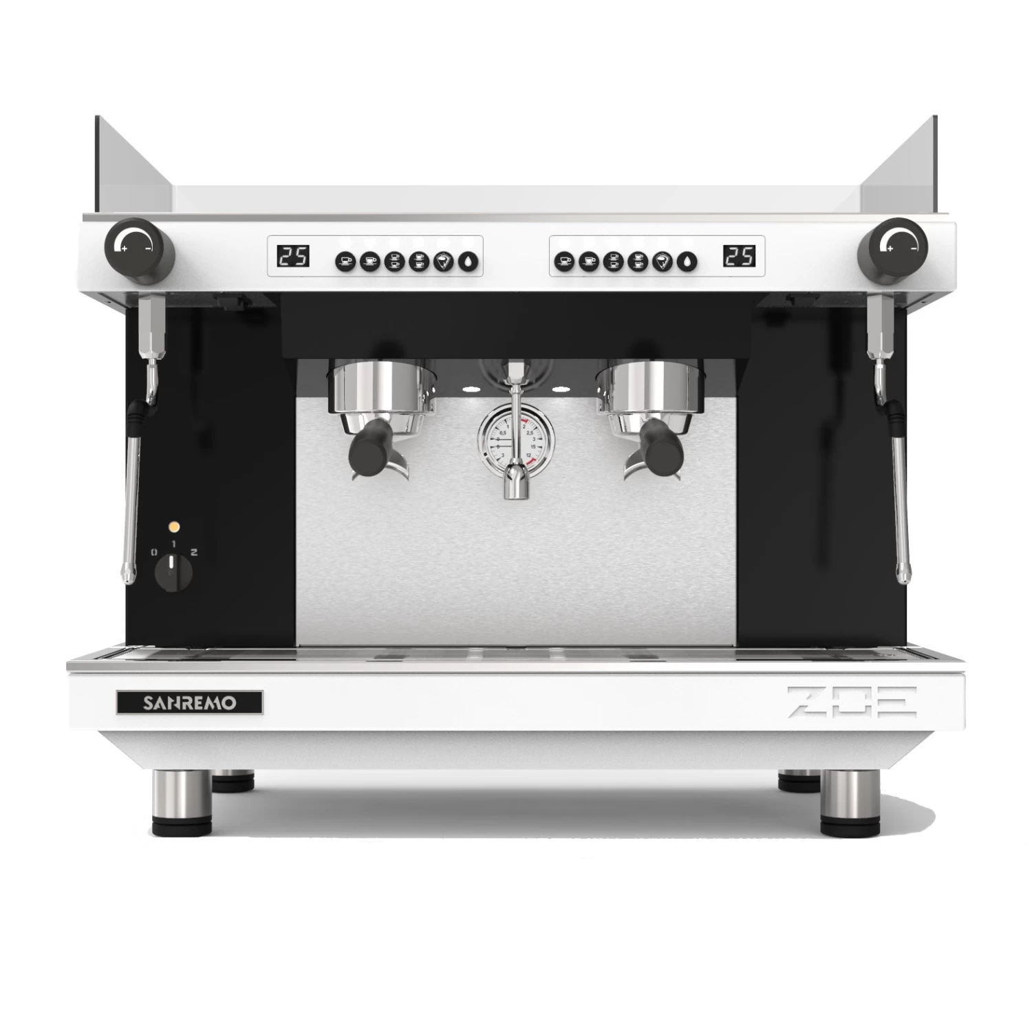 Sanremo is a brand that has set the bar in the industry with coffee machine designs well polished in the style category that are loaded with impressive technology features. The real-time digital displays on some models were inspired by fighter jets and motorcycles and allow the barista to monitor and make changes to water volume, temperature, and shot times giving them more control over the quality of their drinks. Most machines also feature an energy savings system, an eco mode that the machines kick into during idle moments and can save owners 20% in electricity costs making them eco-friendly espresso machines. Sanremo offers premium commercial espresso machines that are built with a passion for professional baristas who love the day-to-day art of coffee and business owners who are looking for custom machines to match their café’s brand and decor. Give your café a cool look and up the vibe with a Sanremo.