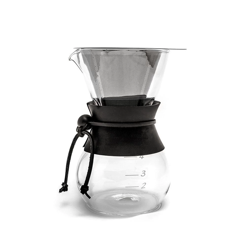 This beautiful 20oz Coffee Drip Pot from Yama Glass comes with a reusable Stainless Steel cone filter, creating an elegant display of modern aesthetic style. The Yama Coffee Drip Pot can be used out of the box with the stainless steel cone filter to brew up to 20 ounces of coffee at a time, or you can add Kalita 185 Paper Filters to produce an even cleaner taste. Each pot is made from hand-blown borosilicate glass, making it heat-resistant, and safe to put in the microwave or dishwasher.