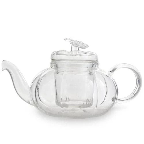 The Yama Glass Pumpkin Teapot is a Limited Edition piece that is perfect for the Fall holidays, country kitchens, fairy tale tea parties, garden tea houses, and more. Made from hand-blown borosilicate glass, it’s heat resistant and safe for use in the microwave or dishwasher. This little pumpkin teapot is durable and pairs nicely with a set of cups and saucers.